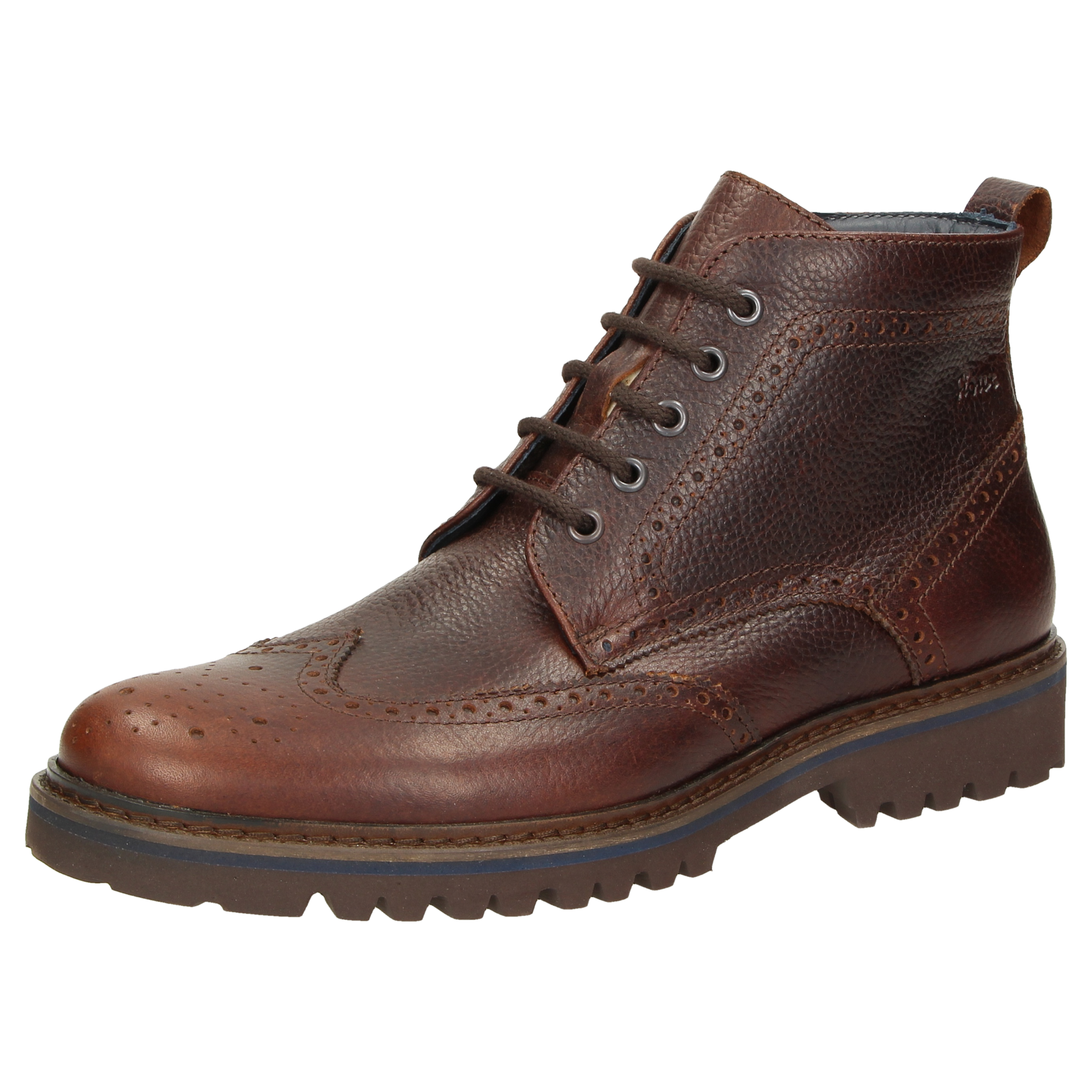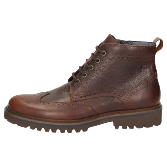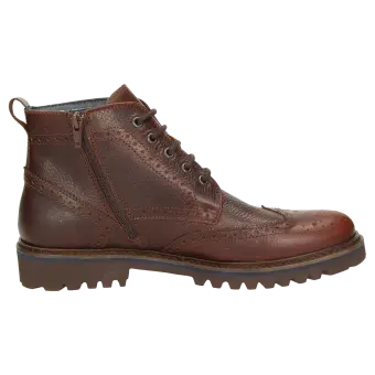Sportieve veterbootie van generfd rundleer, met extra rits voor comfort bij het aantrekken. De vleugelkap met de zogenaamde lyra-perforatie geeft de laars een klassieke look. De uitneembare, met leer beklede inlegzool kan door een eigen inlegzool vervangen worden. Dankzij de textielvoering kan men dit model een groot deel van het jaar dragen. Dit model is extra comfortabel dankzij de lichte, geprofileerde rubberzool!