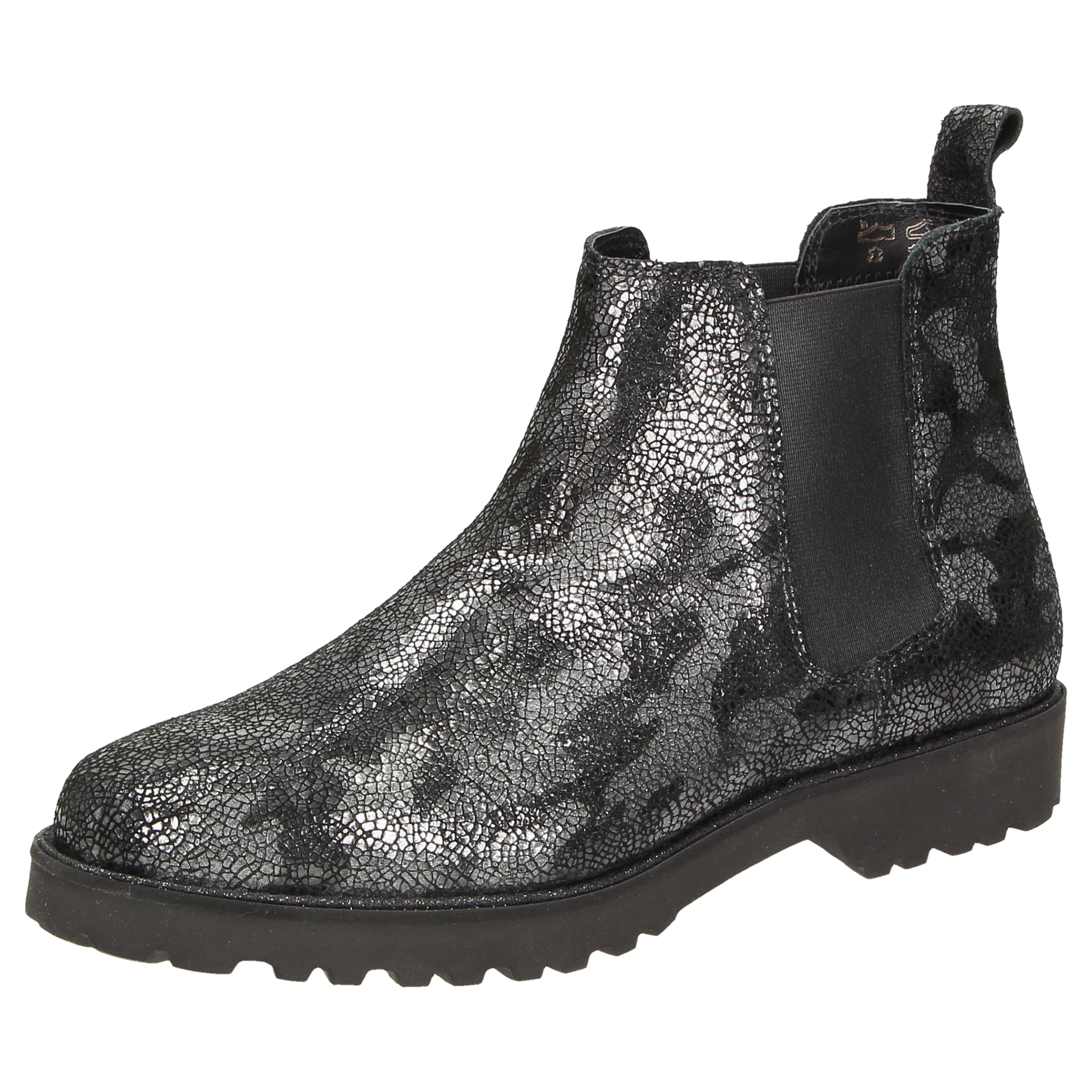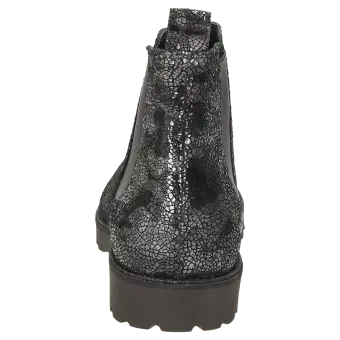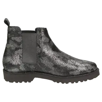 Chelsea-bootie van zacht, bedrukt kalfssuède, met elastiek opzij voor het eenvoudig aantrekken. Gevoerd met microvezel. Met zijn lichte, herfstachtig ogende profielzool is hij de perfecte metgezel voor de hele dag. Inclusief met leer bekleed wisselvoetbed - geschikt voor eigen inlegzolen.