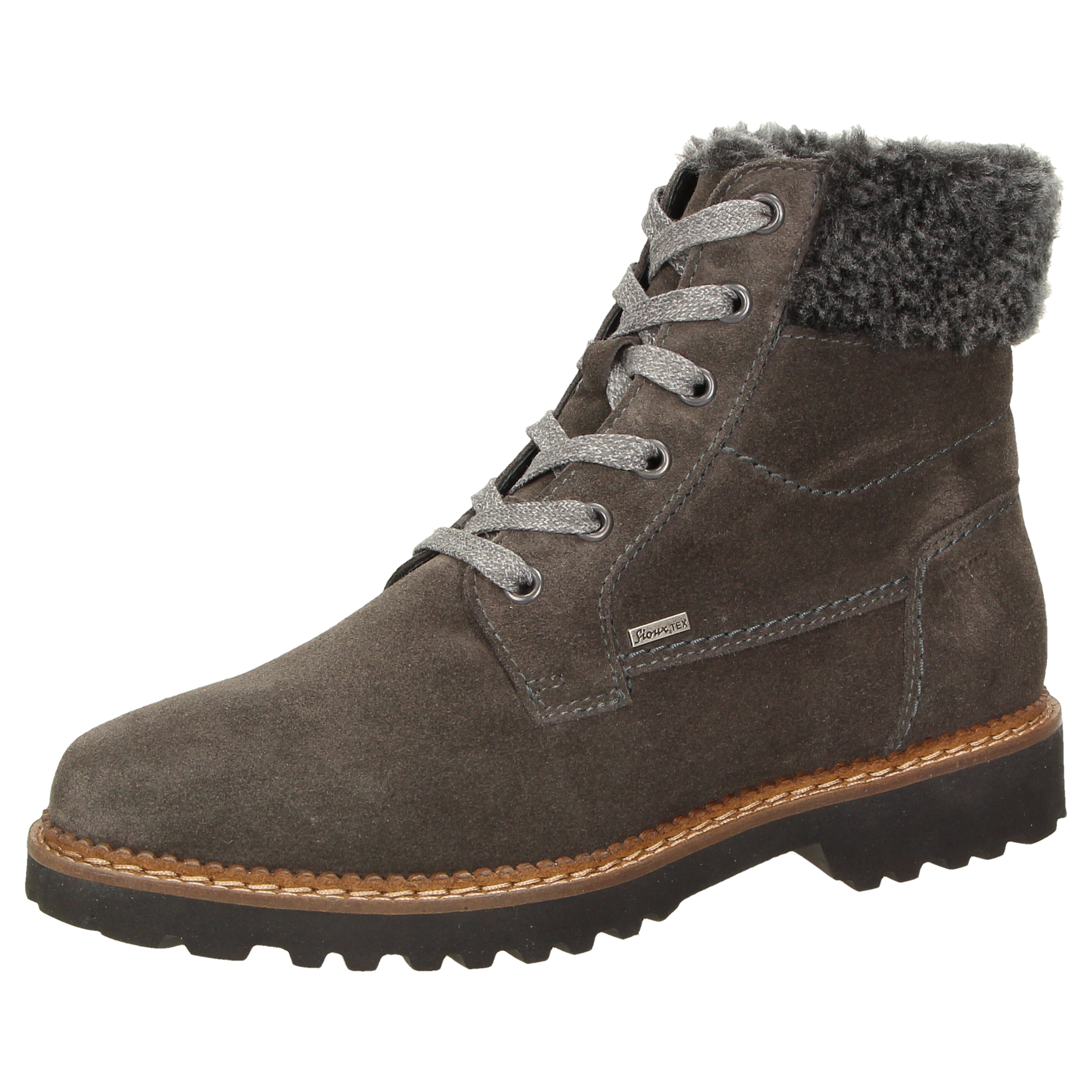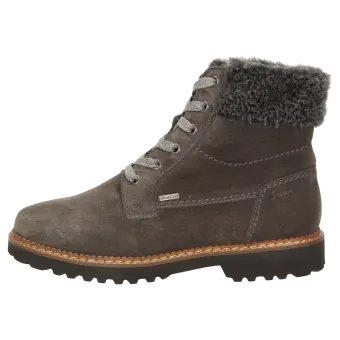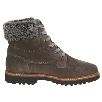 Winterlaarsje met veters, gemaakt van sportief kalfssuède en gevoerd met warme lamsvacht. Met de lichte, herfstachtig ogende profielzool is deze schoen de perfecte begeleider voor koude, droge dagen. Inclusief met vilt bekleed wisselvoetbed - geschikt voor eigen inlegzolen.