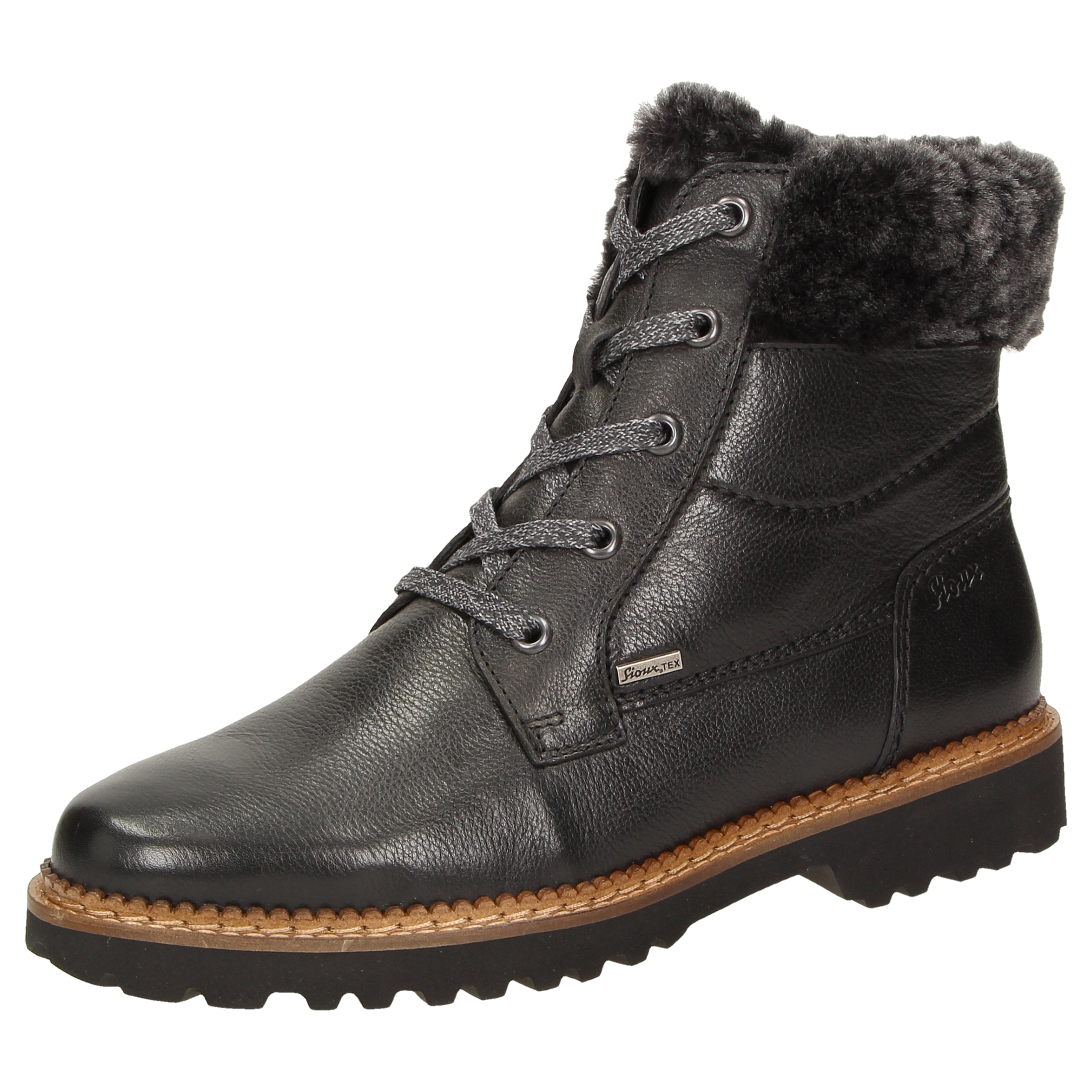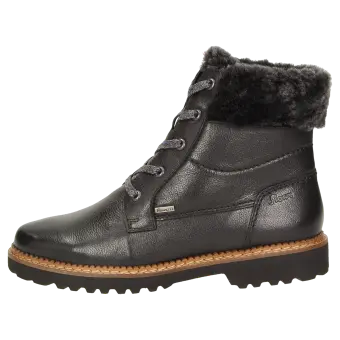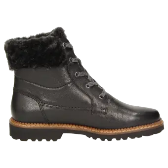 Winterlaarsje met veters, gemaakt van sportief kalfsnappa en gevoerd met warme lamsvacht. Met de lichte, herfstachtig ogende profielzool is deze schoen de perfecte begeleider voor koude, droge dagen. Inclusief met vilt bekleed wisselvoetbed - geschikt voor eigen inlegzolen.
