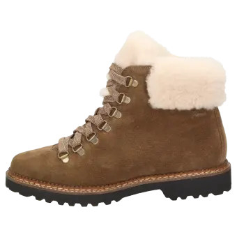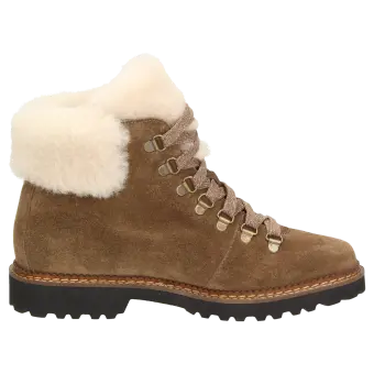 Traditionele veterlaars van zacht suède en een lamsvacht-inzet aan de instap en de tong. Binnenin en op de uitneembare inlegzool gevoerd met zacht teddy - voor koude dagen. Met de lichte, herfstachtig ogende profielzool met zijn markante rand is deze schoen de perfecte begeleider voor koude, droge dagen.