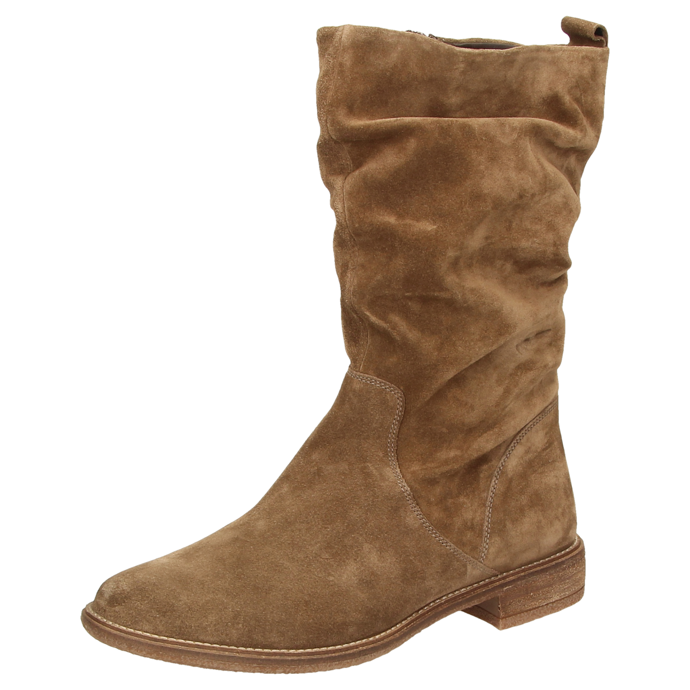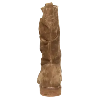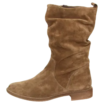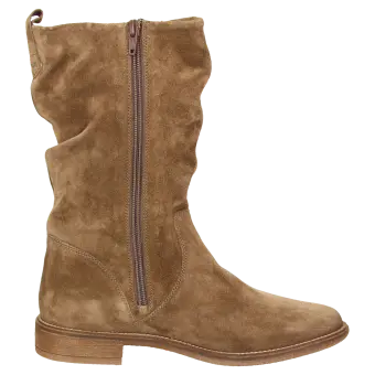 Sportief laarsje van zacht kalfssuède, met binnenrits voor gemakkelijk aantrekken en modische plooien aan de schacht. Binnenvoering van luchtdoorlatend microvezel en doorlopende, zacht gevoerde leren dekzool. Met zijn lichte rubberzool is deze laars perfect voor de herfst en de winter.