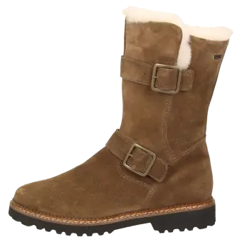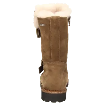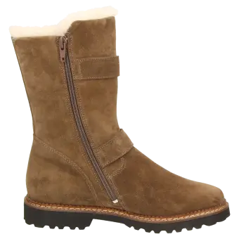 Dameslaarsje met rits, van sportief kalfssuède, in wijdte G en met modische sluiting. Gevoerd met heerlijk zachte lamsvacht en een uitneembare, met vilt beklede dekzool met zachte demping. Een waterafstotende klimaatmembraan zorgt voor droge voeten. Herfstachtig ogende, geprofileerde lichte rubberzool met markante leren rand - ook geschikt voor de eigen inlegzool.