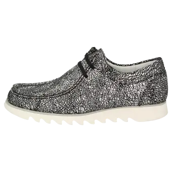 Modische damesschoen die overtuigt met luchtigheid, een comfortabele F-wijdte en bijzondere, modische accenten. Bovendien overtuigt deze mocassin met uitstekend comfort door de extra teenruimte en een wisselvoetbed dat de schoen bij uitstek geschikt maakt voor eigen inlegzolen. Dit sneaker-alternatief met zijn zachte geitensuède in metallic-look is een echt highlight. De lichte rubberzool met haaientandenprofiel geeft een onnavolgbaar licht en aangenaam loopgevoel.