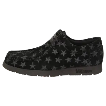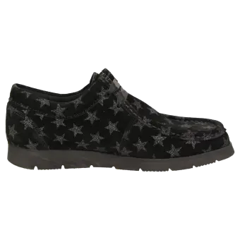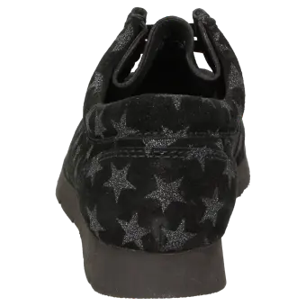 Dit sneaker-alternatief van fijn kalfssuède met glinsterende sterrenopdruk en fijne satijnen veters is een echte blikvanger. Deze damesschoen overtuigt met extra luchtigheid, een comfortabele F-wijdte en bijzondere, modische accenten. Bovendien overtuigt deze mocassin met uitstekend comfort door de extra teenruimte en een met leer bekleed wisselvoetbed dat de schoen bij uitstek geschikt maakt voor eigen inlegzolen. De lichte rubberzool geeft de sneaker een onnavolgbaar licht en aangenaam loopgevoel.