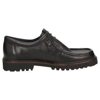 Lichte Grashopper heren-mocassin van rustiek buffelleer, met doorlopende voering van microvezel. Zacht gevoerd kalfsleren wisselvoetbed, eenvoudig te vervangen door de eigen inlegzool. Lichte rubberzool met hak - voor een gegarandeerd aangenaam loopgevoel. De bekende Grashopper in nieuwe uitvoering.