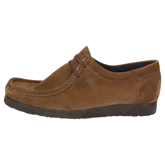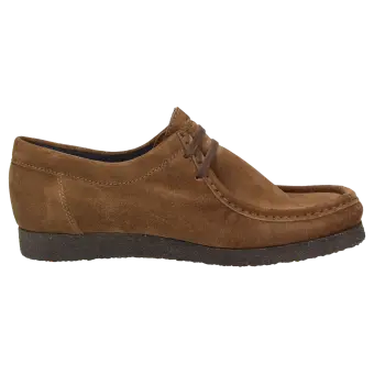 Grashopper heren-mocassin van kalfssuède, met echte crêpezool. Doorlopend gevoerd met microvezel en een zacht beklede kalfsleren dekzool. De bekende Grashopper in klassieke uitvoering.