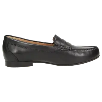 Dames-instapper in mocassin-maakwijze. Met klassiek pennyloafer-element, in gemakkelijke schoenwijdte H, van ongelooflijk zacht lamsnappa. Met wisselvoetbed, dus ook geschikt voor uw eigen inlegzolen. De elastiekinzetten opzij zorgen voor een uitstekende pasvorm, de fijne rubberzool, de hoogwaardige leren voering en de kleine hak zorgen voor een aangenaam loopgevoel.