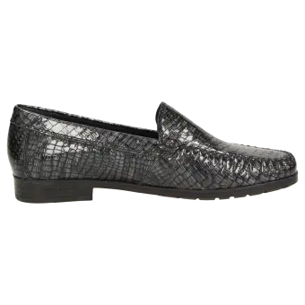 Heerlijk comfortabele dames-mocassin-instapper in schoenwijdte F, van kalfslakleer met kroko-effect, in optimale pasvorm en tijdloze elegantie. Voering en zachte doorlopende dekzool van kalfsleer. Zachte rubberzool met platte hak. Een echte dames-mocassin van Sioux: al jaren een absolute bestseller.