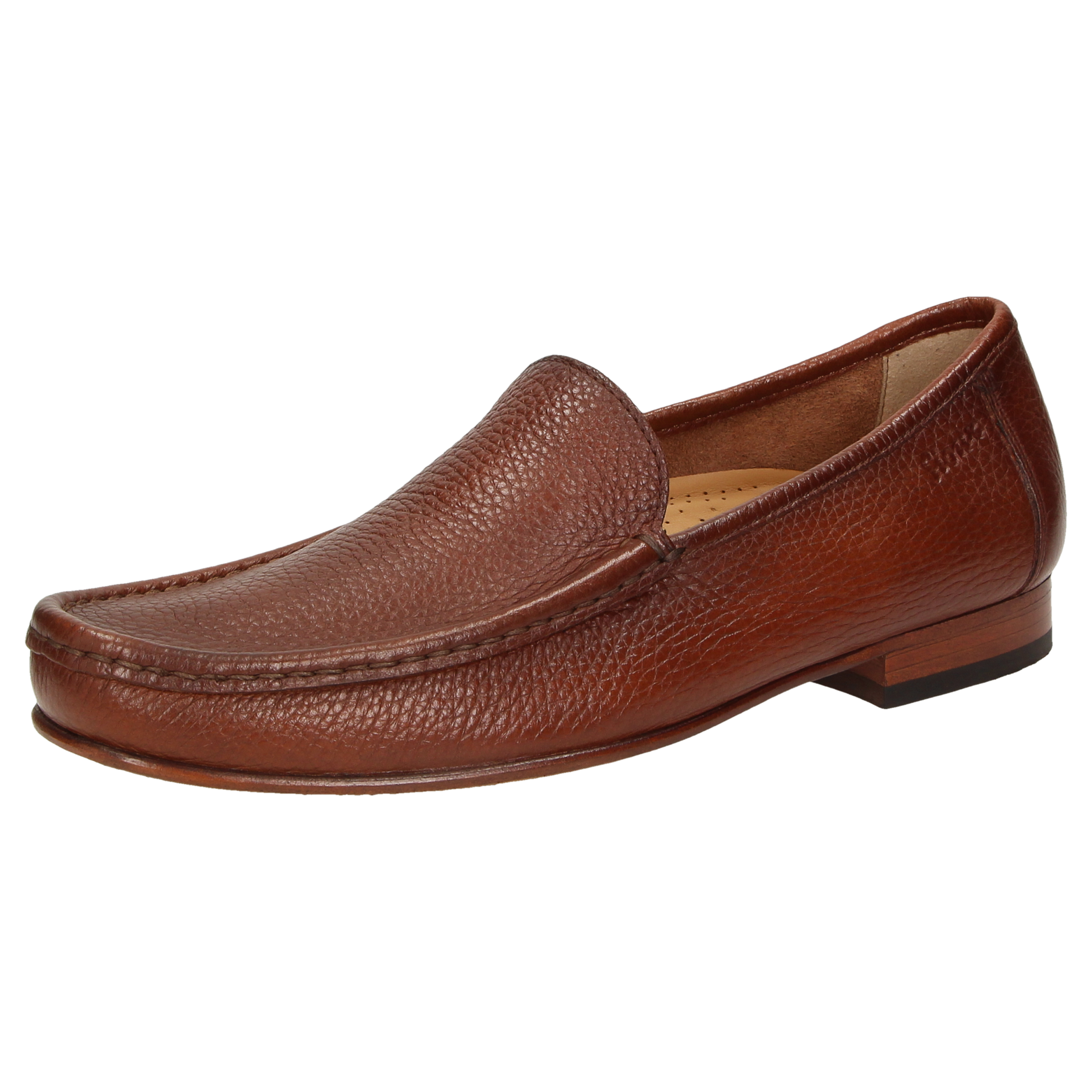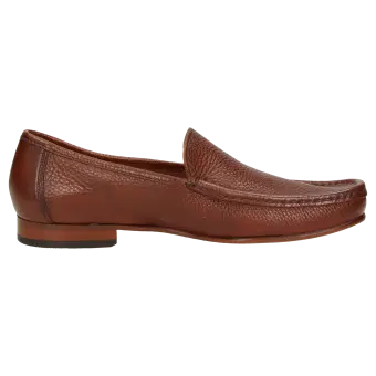 Ongevoerde heren-mocassin van zacht rundernappa: al jaren een absolute bestseller, met zachte hiel-/middenvoetvoering en zomerse leren zool.