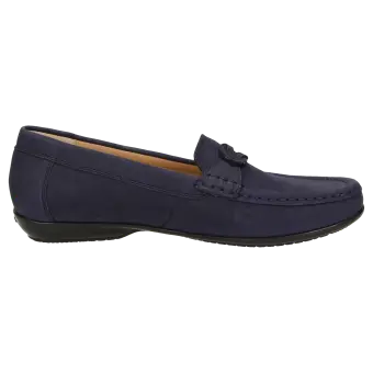 Mooie, sportieve damesmocassin van fluweelzacht leer, met een flexibele rubberzool en optimaal draagcomfort. Met zijn tijdloos elegante sierelement is dit model een klassieker.