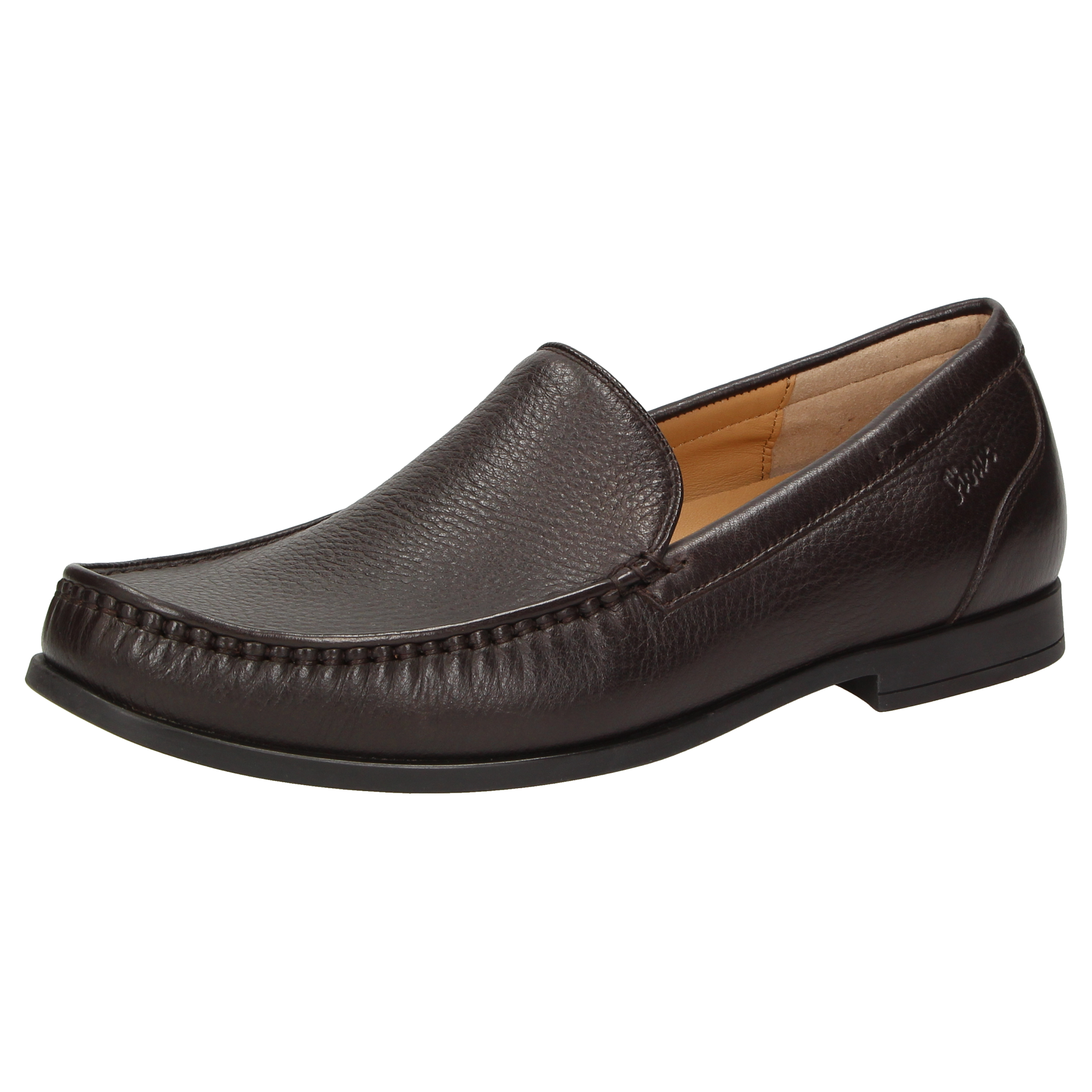 Tijdloos klassieke heren-mocassin van fluweelzacht hertenleer. Het met de hand vervaardigde model in de normale G-wijdte heeft een leren binnenvoering. Het gevoerde en met kalfsleer beklede wisselvoetbed en de zachte, soepele rubberzool zorgen voor een aangenaam loopgevoel.