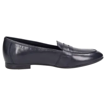 Soepele dames-instapper van glanzend lamsleer met modisch pennyloafer-element. Deze damesschoen is helemaal gevoerd met zacht kalfsleer. Met de dekzool van gevoerd kalfsleer is dit damesmodel de perfecte schoen voor de herfst. De dames-instapper in de comfortabele G-wijdte heeft een fijne rubberzool en een 10mm-hak.