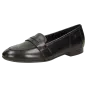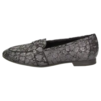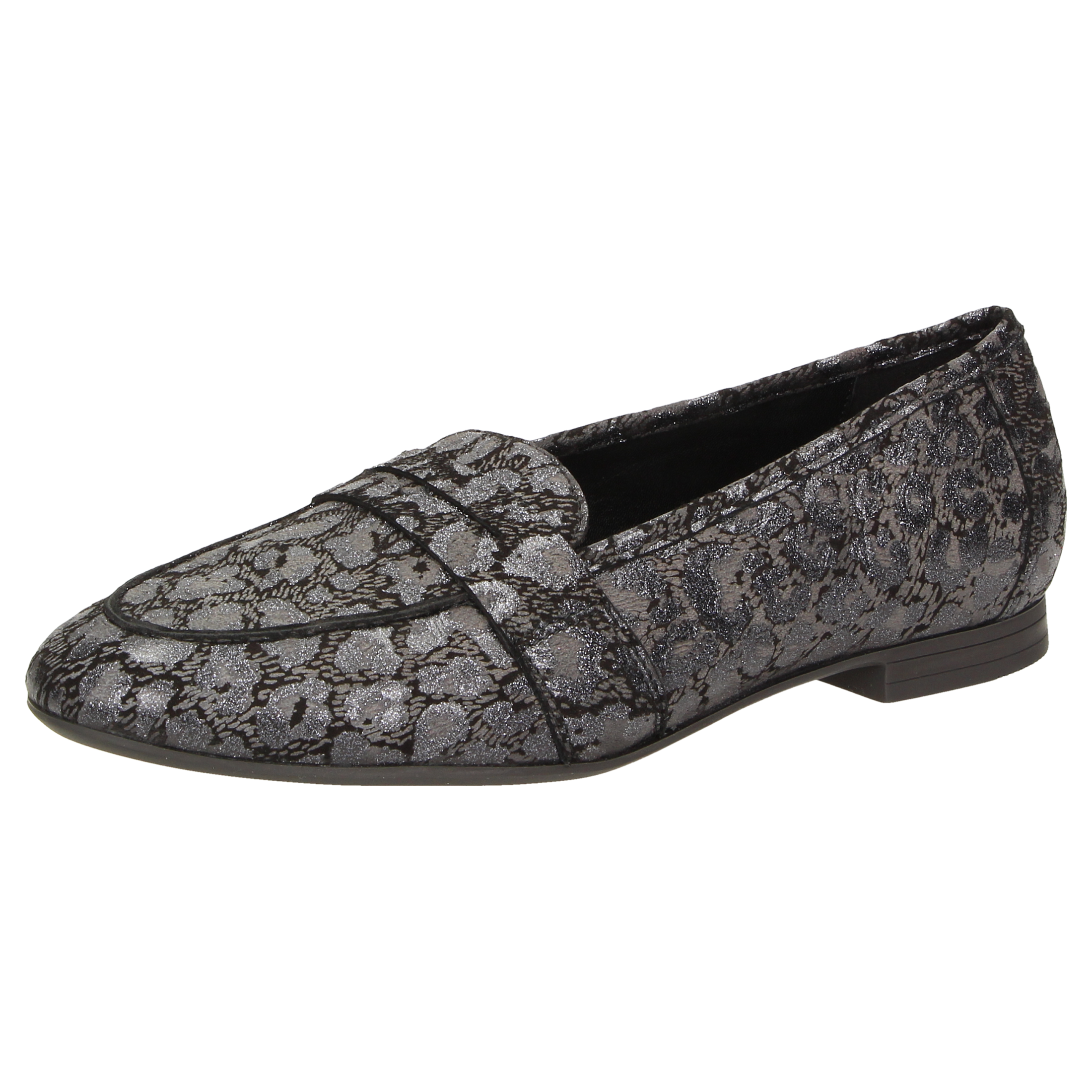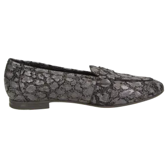 Soepele dames-instapper van glanzend geitensuède met modisch pennyloafer-element en leo-print. Deze damesschoen is helemaal gevoerd met zacht kalfsleer. Met de dekzool van gevoerd kalfsleer is dit damesmodel de perfecte schoen voor de herfst. De dames-instapper in de comfortabele G-wijdte heeft een fijne rubberzool en een 10mm-hak.