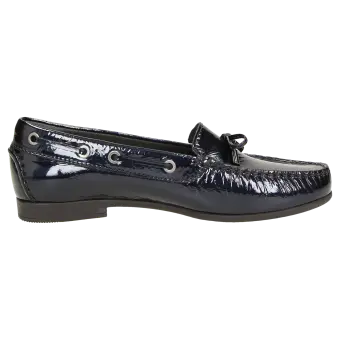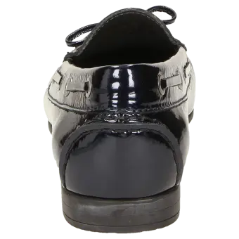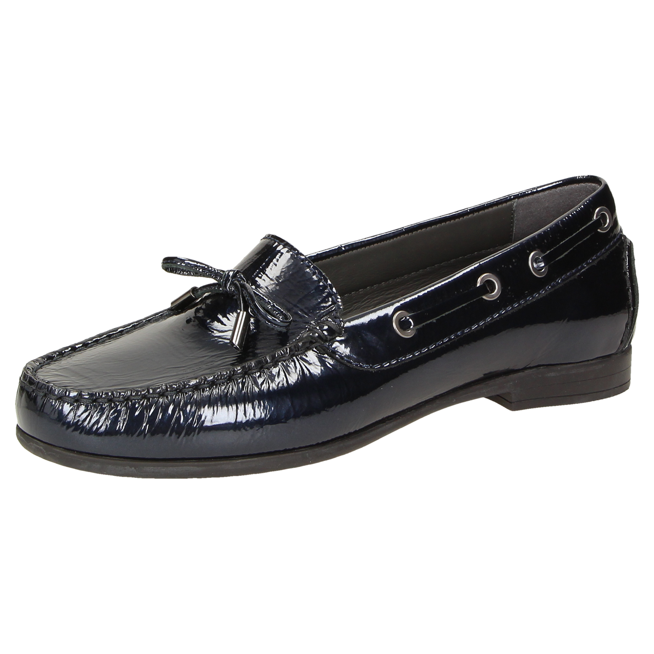 Modische dames-mocassin-instapper in gemakkelijke G-wijdte. Deze damesschoen van gekreukt metallic kalfslakleer met strikelement en kwasten is perfect geschikt voor de iets bredere voet. De leren voering, de slipremmende rubberzool met kleine hak en het met leer beklede wisselvoetbed zijn karakteristiek voor dit model. Daarmee is deze damesschoen zonder meer ook geschikt voor uw eigen inlegzolen.