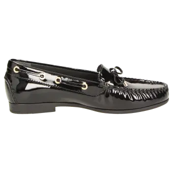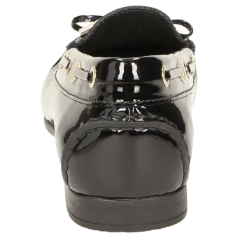 Modische dames-mocassin-instapper in gemakkelijke G-wijdte. Deze damesschoen van kalfslakleer met strikelement en kwasten is perfect geschikt voor de iets bredere voet. De leren voering, de slipremmende rubberzool met kleine hak en het met leer beklede wisselvoetbed zijn karakteristiek voor dit model. Daarmee is deze damesschoen zonder meer ook geschikt voor uw eigen inlegzolen.