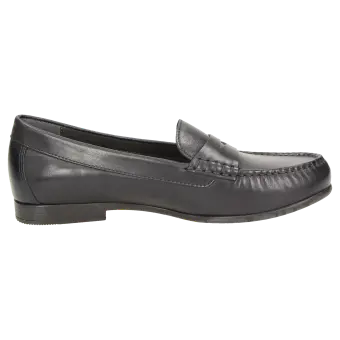 Een klassieke dames-mocassin-instapper in de gemakkelijke schoenwijdte G, van glanzend kalfsnappa, met modisch pennyloafer-element. De leren voering, de slipremmende rubberzool en het met leer beklede wisselvoetbed zijn karakteristiek voor dit model. Deze damesschoen is zonder meer ook geschikt voor uw eigen inlegzolen.