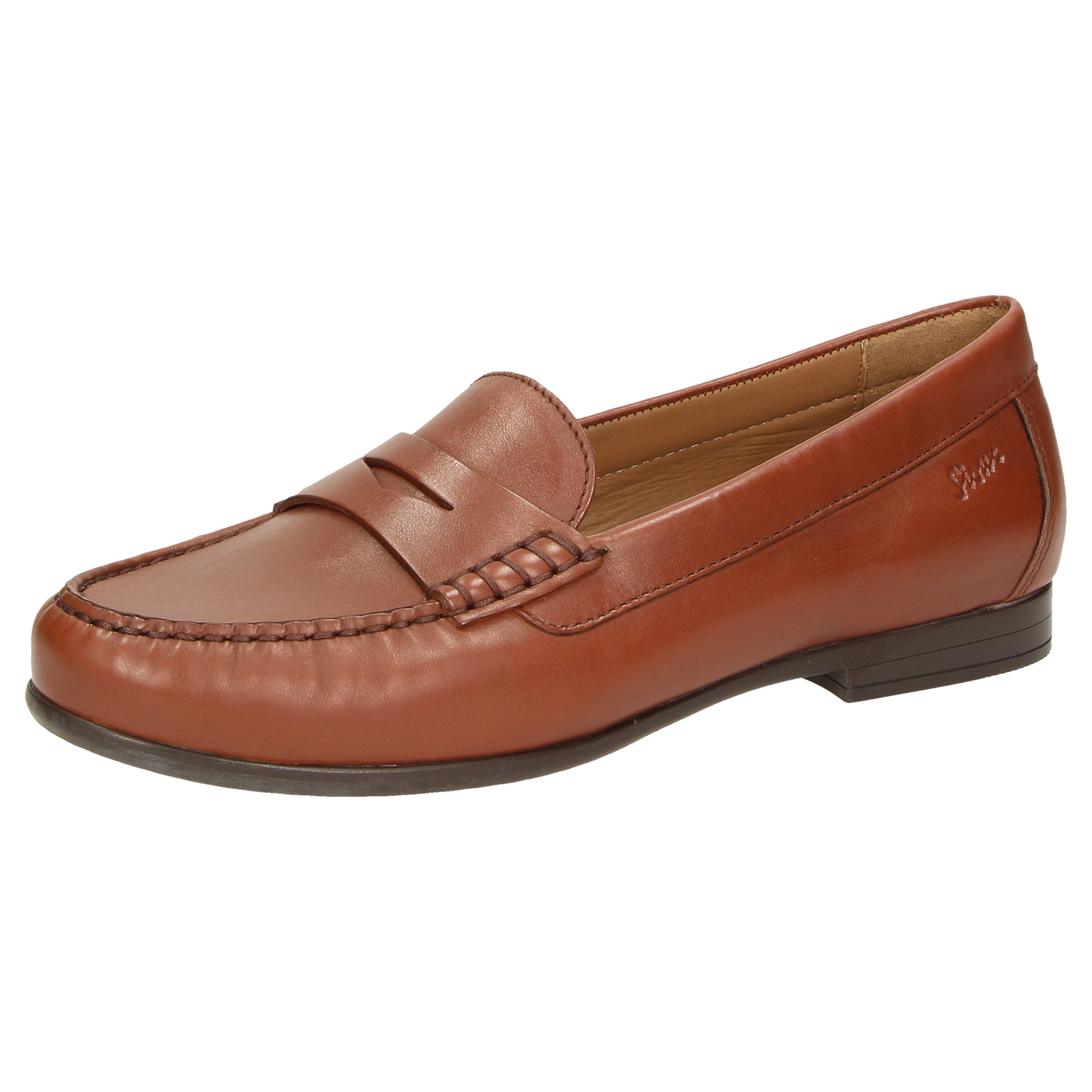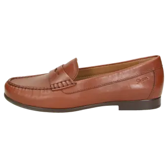 Een klassieke dames-mocassin-instapper in de gemakkelijke schoenwijdte G, van glanzend kalfsnappa, met modisch pennyloafer-element. De leren voering, de slipremmende rubberzool en het met leer beklede wisselvoetbed zijn karakteristiek voor dit model. Deze damesschoen is zonder meer ook geschikt voor uw eigen inlegzolen.