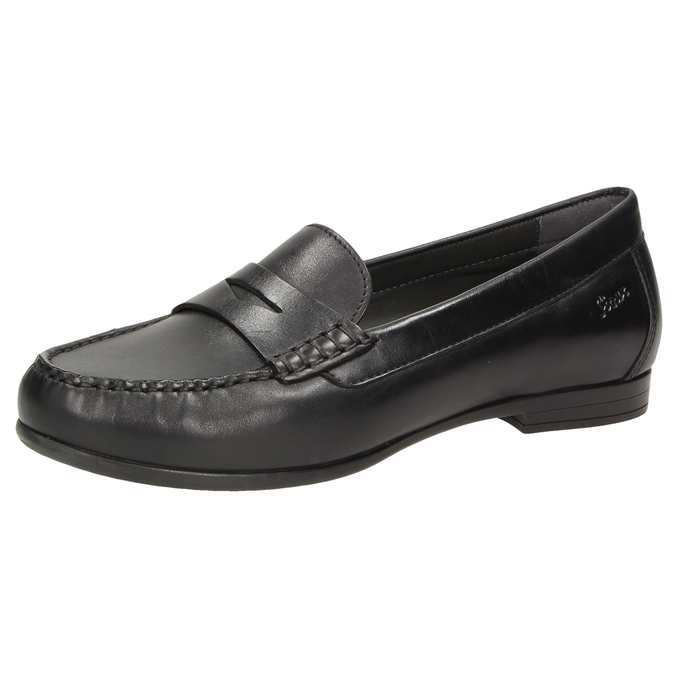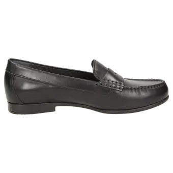 Een klassieke dames-mocassin-instapper in de gemakkelijke schoenwijdte G, van glanzend kalfsnappa, met modisch pennyloafer-element. De leren voering, de slipremmende rubberzool en het met leer beklede wisselvoetbed zijn karakteristiek voor dit model. Deze damesschoen is zonder meer ook geschikt voor uw eigen inlegzolen.