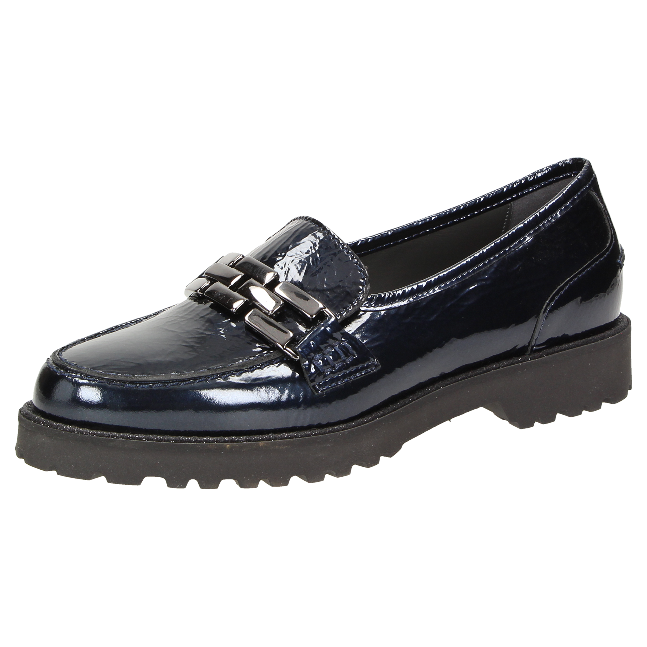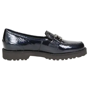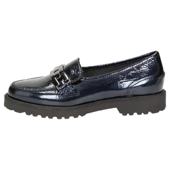 Opvallende dames-instapper van gekreukt metallic lakleer met kalfsleren voering en edel metaal-element. Met zijn lichte, herfstachtig ogende profielzool is hij de perfecte metgezel voor de hele dag. Inclusief met leer bekleed wisselvoetbed - geschikt voor eigen inlegzolen.