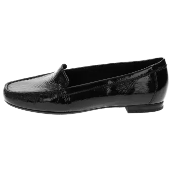 De vlotte dames-instapper in mocassin-maakwijze en schoenwijdte F: het fijne kalfs-kreuklakleer en de luchtige binnenvoering van microvezel verwennen de voet. Extra comfort biedt de damesschoen met het gevoerde wisselvoetbed en de zomers lichte rubberzool.