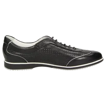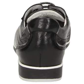 Modische dames-sneaker van heerlijk zacht kalfsnappa met luchtige perforatie, in gemakkelijke G-wijdte, met voering van exclusief kalfsleer. Met de zacht gevoerde kalfsleren dekzool is deze schoen ideaal om blootsvoets te dragen. Als extra comfortelementen zorgen de slipremmende rubberzool, de 15mm-hak en de witte contrastrand voor een aangenaam loopgevoel.