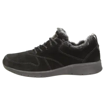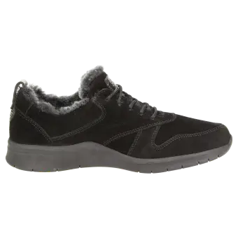 Een veterschoen voor warme voeten! In California-maakwijze ambachtelijk vervaardigd van fijn kalfssuède. Helemaal gevoerd met warme lamsvacht. Doorlopende, zacht gevoerde en met vilt beklede dekzool die eenvoudig vervangen kan worden door een eigen inlegzool. Uiterst comfortabele H-wijdte en een bijzonder flexibele loopzool van natuurlijke caoutchouc.