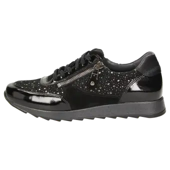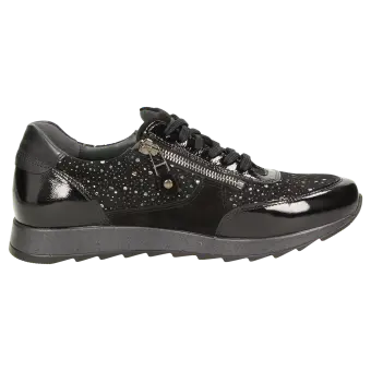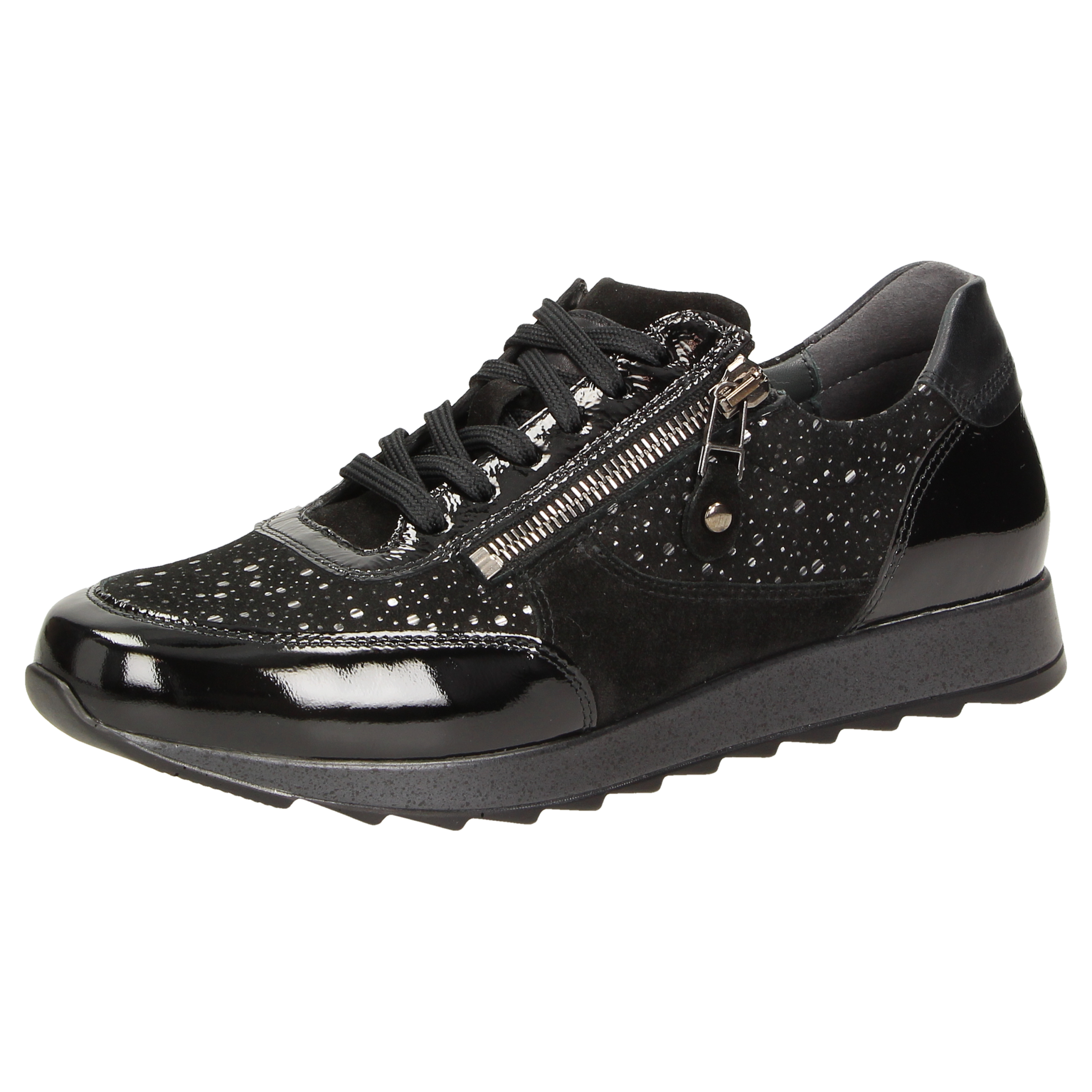 Platte dames-veterschoen van Sioux, in G-wijdte. Vervaardigd in een combinatie van zacht lakleer en suède. Kalfsleren voering en uitneembare, met kalfsleer beklede dekzool met zachte demping - ook geschikt voor de eigen inlegzool. De geprofileerde, herfstachtig ogende PU-zool vormt de perfecte afronding voor deze schoen.