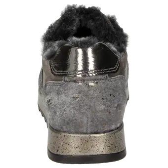 Platte dames-veterschoen van Sioux, in G-wijdte. Vervaardigd van fijn kalfssuède en geitensuède met metallic opdruk. Met lamsvacht aan de instap en aan de tong. Kalfsleren voering en uitneembare, met kalfsleer beklede dekzool met zachte demping - ook geschikt voor de eigen inlegzool. De geprofileerde, herfstachtig ogende PU-zool vormt de perfecte afronding voor deze schoen.
