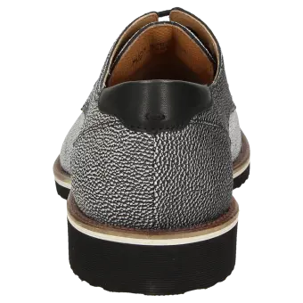 Modischer Herren-Schnürer in bequemer G-Weitenaus Kalbleder in zweifarbiger Rochenoptik mit glattem Vorderblatt. Die durchgehend weich gepolsterte Decksohle wird ergänzt durch ein Leder-Microfaser-Innenfutter. Blaue Leichtgummisohle mit 10-mm-Absatz und aufgelegtem, geprägten Rahmen mit weißem Kontrast. Die Gummisohle dämpft beim Gehen und vermittelt ein angenehmes Laufgefühl. Ein Schuh für alle, die viel unterwegs sind. Ein zweites Paar Schnürsenkel in Kontrastfarbe ist dem Schuh beigelegt.