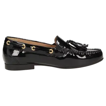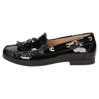 Damen-Mokassin in bequemer Schuhweite H aus besonders weichem Kalblack mit hochwertigem Lederfutter. Dieser Damenschuh eignet sich durch das Wechselfußbett hervorragend auch für Einlagen. Die seitlichen Gummizüge sorgen für märchenhaft bequeme Passform. Zusätzlich sorgt die feine Gummisohle mit kleinem Absatz für einen weichen Auftritt.