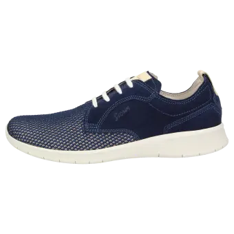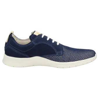 Sehr komfortabler, zeitloser Herren-Sneaker aus sportlichem Textil-Mesh und Kalbvelours mit einem Futter in angenehmer Leder-Microfasertextil-Kombination. Weich gepolstertes, lederbezogenes Wechselfußbett zum Herausnehmen und Austauschen durch die eigene Einlage. Superflexible und angenehm weiche Latexsohle aus Naturkautschuk. Die bequeme H-Weite macht diesen einzigartigen Schuh zum Begleiter für jeden Tag.