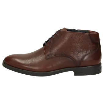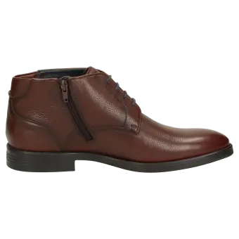 Herrenschnür-Bootie mit praktischem Reißverschluss in einer optisch schlanken, modischen Leistenform der dennoch eine komfortable Mehrweite "H" hat. Gefertigt aus weichem Kalbleder, mit einem Microfasertextil-Innenfutter und soft gepolstertem, lederbezogenen Wechselfußbett zum Herausnehmen und Austauschen durch die eigene Einlage. Das Besondere an diesem Schuh ist die sehr weiche und federnde Gummisohle - für ein perfektes Tragegefühl: Natural Move System. Dieses Modell zeichnet sich durch besondere Bequemlichkeit, einzigartige Flexibilität und außergewöhnliche Weichheit aus.