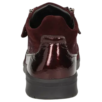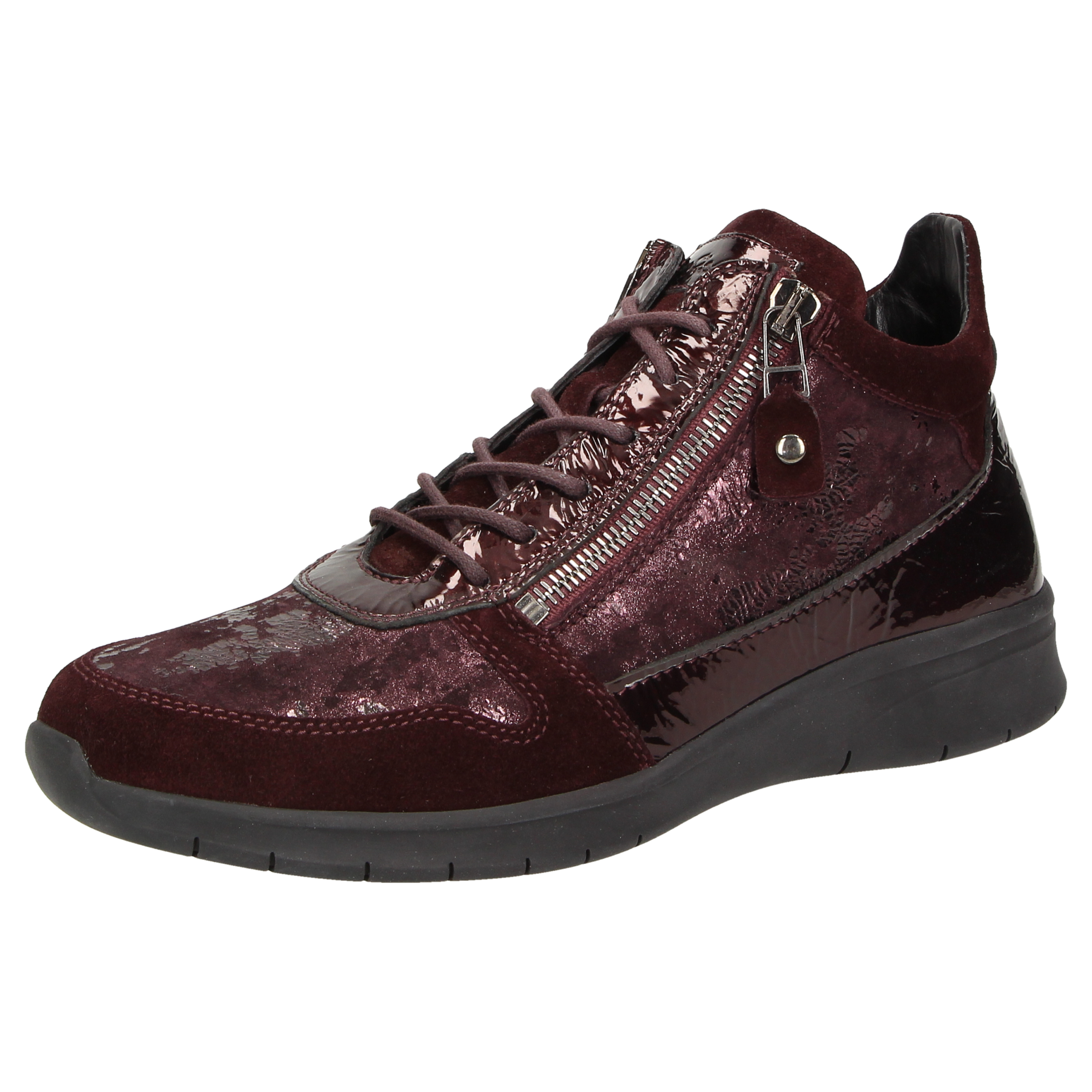 Sehr bequemer, knöchelhoher Damenschnürschuh mit 2 zusätzlichen Seitenreißverschlüssen für leichtes Einschlüpfen. In California-Machart handwerklich gefertigt aus einem Materialmix von feinem Kalbvelours, teils mit Metallic-Optik und Applikationen aus geknautschtem Metallicleder. Durchgehend gefüttert mit Microfaser-Textil. Durchgehende, weich gepolsterte Kalbleder-Decksohle zum Herausnehmen und Austauschen durch eine eigene Einlage. Superflexible und sehr komfortable Latexsohle aus Naturkautschuk und bequeme H-Weite.